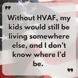 “When every door seemed closed, HVAF was the one that opened and didn’t just give me a place to stay but a chance to start over.”