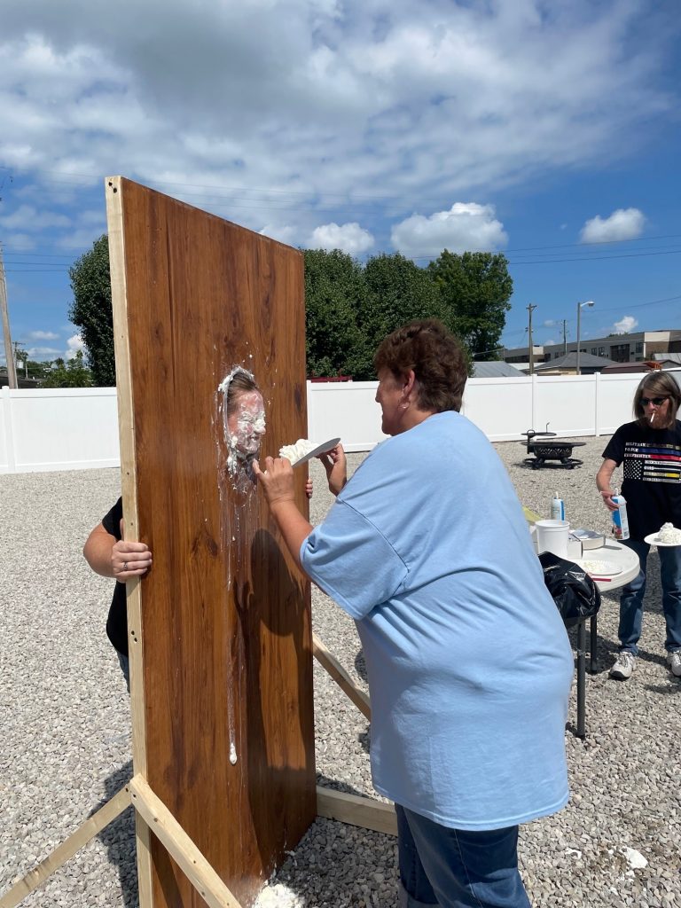 The last adventure was a fundraiser at the VFW Auxiliary 1127 in Brazil. This event featured pie throwing and a dunk tank, with some delicious burgers! This will definitely be the most unique task I have ever completed in any job I’ve ever had! Not only did VFW members pay to put pies in my face, my supervisor, Ashlee, joined in the fun! I have never saw her so happy! In addition, I braved the dunk tank, being submerged about nine times! Eight of those times was by a young baseball pitcher and one time was by Ashlee. She was unsuccessful with her throws, so she resorted to cheating and just pushed the button!