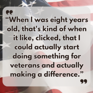 At the age of 14, you would think a teenager’s main focus would be on activities such as sports or video games, but not Grace! At just 8 years old, Grace has been fighting alongside HVAF to END veteran homelessness, while at the same time, serving as American Legion Auxiliary Junior Vice President. This accomplished teen raised over $28,000 for veterans in need for her project with the American Legion Auxiliary Juniors! What started as selling handmade crafts as a child has led to speaking to churches and American Legion meetings, asking for funding!
