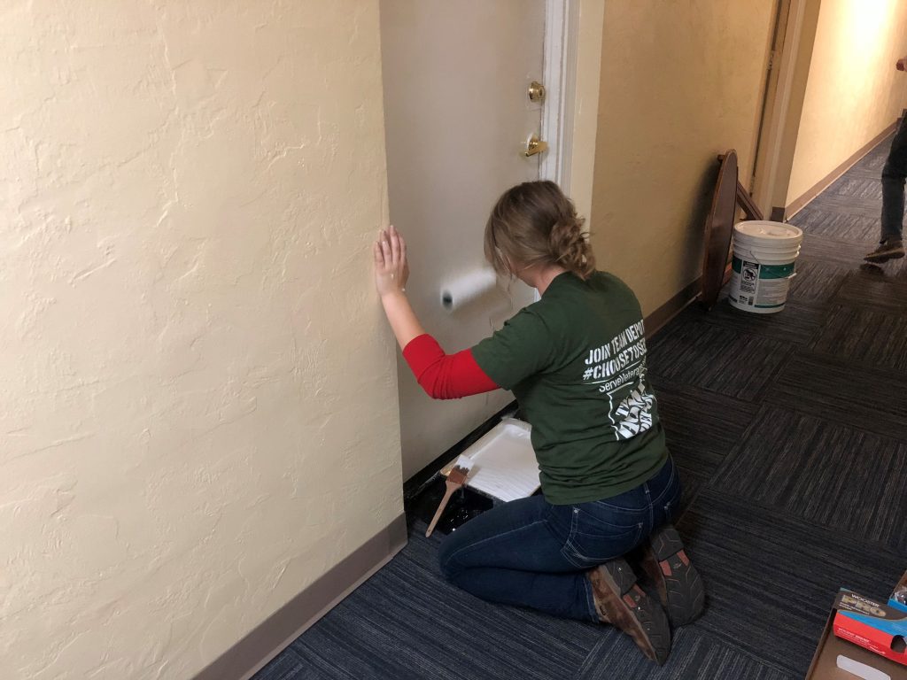 The Home Depot Foundation has continuously helped us over the last 11 years. Some of the projects include redoing our conference room and transforming our old bunk room to a well-functioning pantry for our outreach hours on Tuesdays and Thursdays. Last week, the team came out to our Moreau Apartments and painted, reinstalled locks, mowed the lawn, laid down flooring, and other property beautification work.