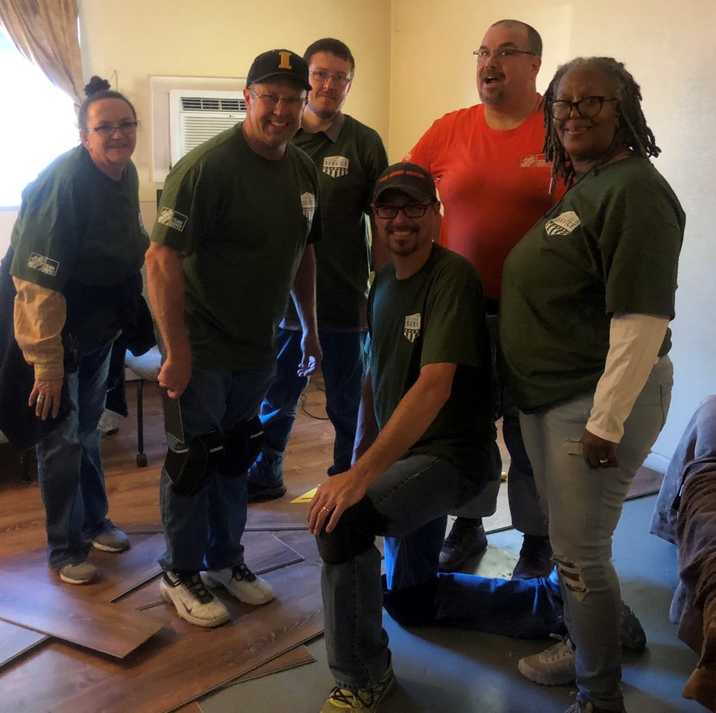 The Home Depot Foundation has continuously helped us over the last 11 years. Some of the projects include redoing our conference room and transforming our old bunk room to a well-functioning pantry for our outreach hours on Tuesdays and Thursdays. Last week, the team came out to our Moreau Apartments and painted, reinstalled locks, mowed the lawn, laid down flooring, and other property beautification work.