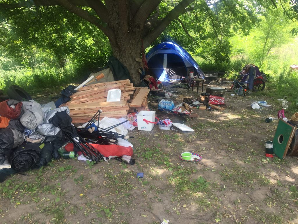 All throughout downtown Indy, in places you would have no idea, homeless camps are set up. Tents, bags, mats, blankets, and other