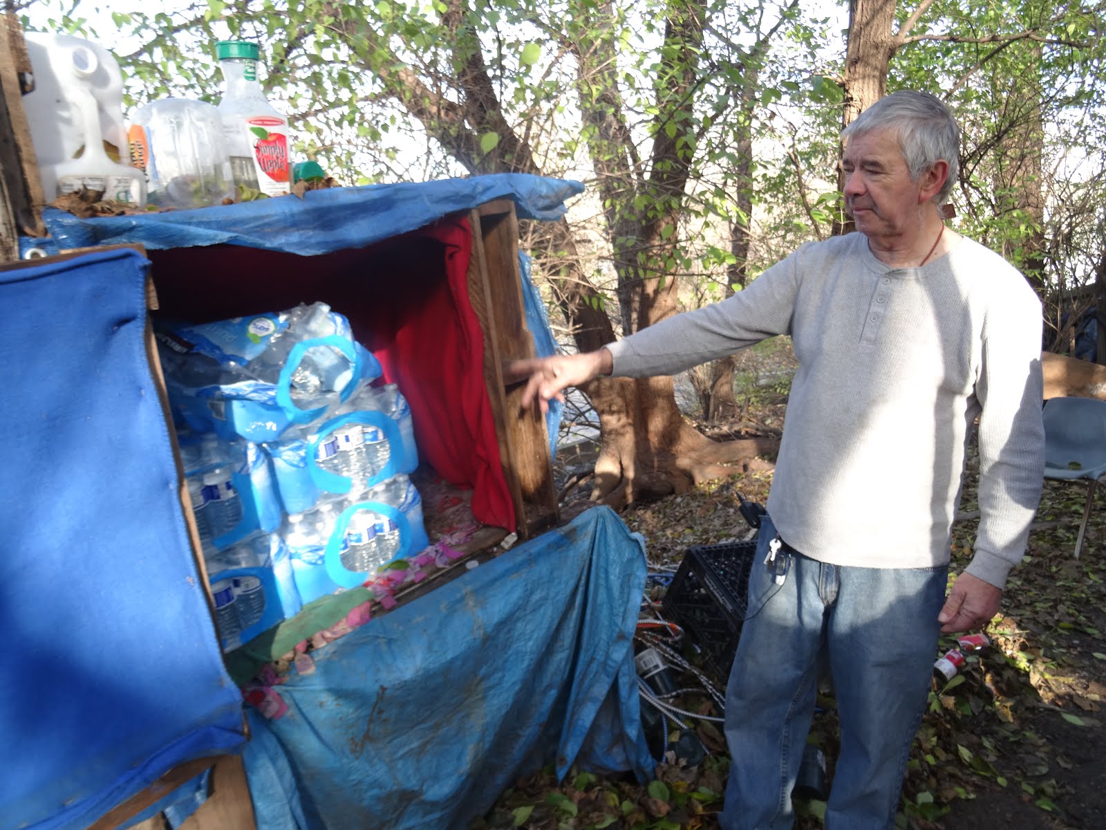 John Wheeler, a former Sgt. Platoon Leader in the Marines who served two terms in Vietnam, is living on the streets for the fifth winter in a row. He’s from Tell City, Indiana and now calls “Tent City” home. HVAF Outreach Worker Rodney Jackson tells us last year there were 17 people living in Tent City, but now there are only a handful of homeless individuals. John finds peace here and is living on the streets by choice.