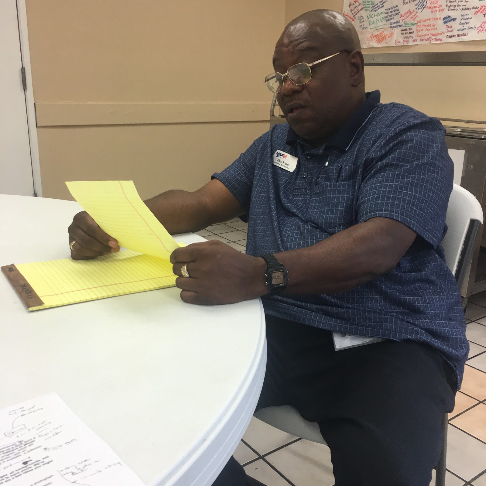 Fred Young, HVAF Recovery Coordinator reading his letter to the group |